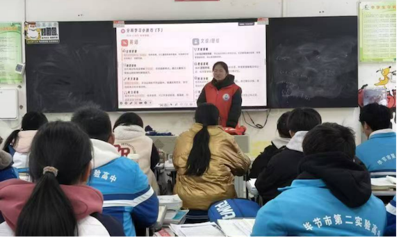 在新疆玉斯屯克阿依赛克村石榴籽小课堂,2025级本科生彭安琪担任志愿教师,开展课业辅导与民族团结宣传教育,用青春热情架起民族交流的桥梁。