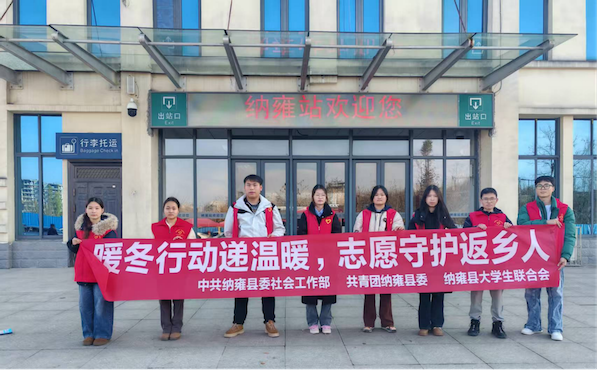 2025级研究生聂银银参与凤冈县多单位联合发起的志愿服务活动。她穿梭在凤冈客运站与大街小巷,为返乡旅客送热饮、搬行李,还贴心发放安全宣传资料,用通俗语言讲解防火、反诈、出行安全知识,让冬日温暖伴归途。