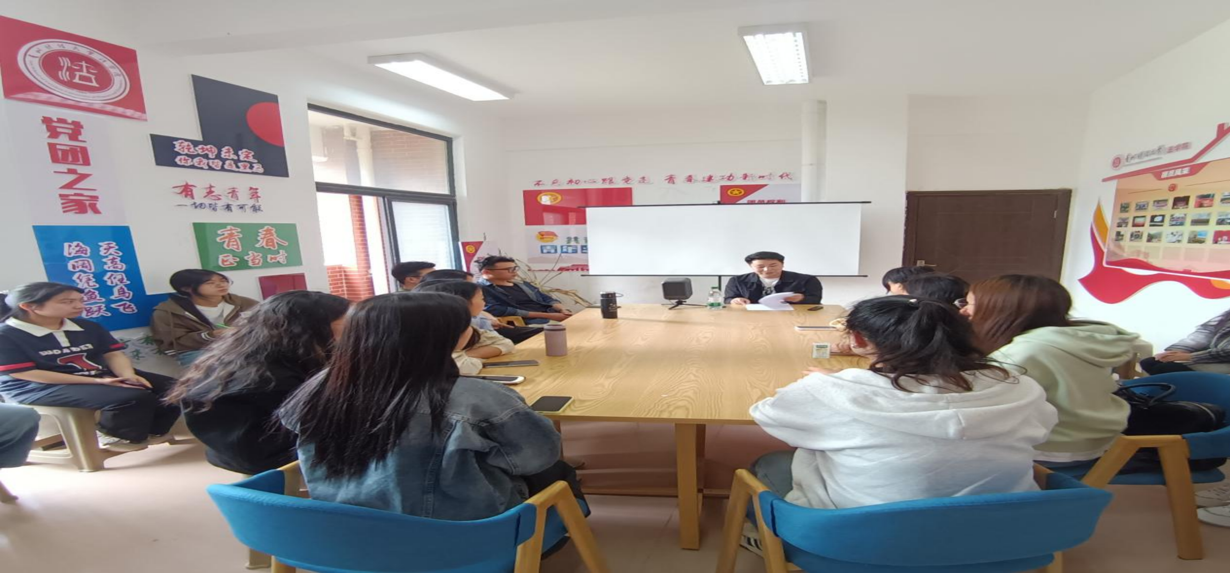 程银老师走进法学院玉兰苑1栋433活动室为20位学生代表带来宣讲。程银老师提出,习近平总书记在贵州考察时的重要讲话为贵州发展与我们的行动指明方向。对学子们表达期望——作为法学院学生,应将其精神融入法学学习实践,为经济社会高质量发展、法治社会建设以及中华民族伟大复兴贡献力量。同学们仔细聆听。