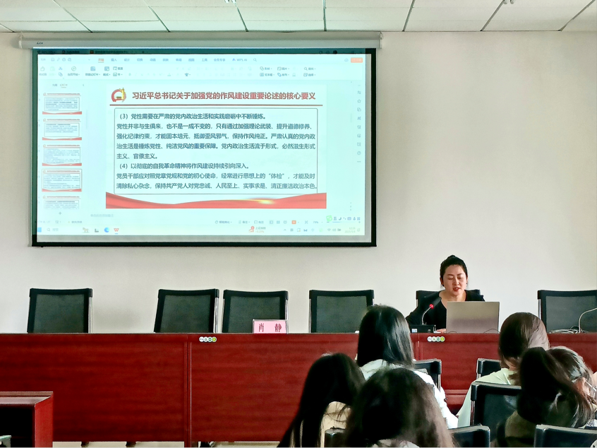 肖静副书记结合深入贯彻中央八项规定精神学习教育要求,从核心要义、价值意蕴、实践路径三方面来系统阐释党的作风建设理论与现状,强调作风建设是党的形象工程,需从锤炼党性修养、密切党群关系入手,通过整治“四风”、深化反腐败斗争等实践路径推动作风建设常态化。