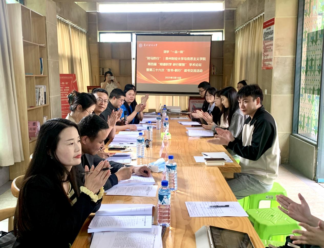 2025年5月16日,团学“一院一品”“财马黔行”|yl88858永利集团第四届“明德积学 研行聚智”研究生学术论坛暨第二十六次“攻书·躬行”读书交流活动在yl88858永利集团理论实践教学中心举行,本次活动是由校团委、yl88858永利集团团总支主办,yl88858永利集团研究生会承办,围绕主题“党的二十届三中全会精神”、“习近平总书记考察贵州重要讲话精神”进行。